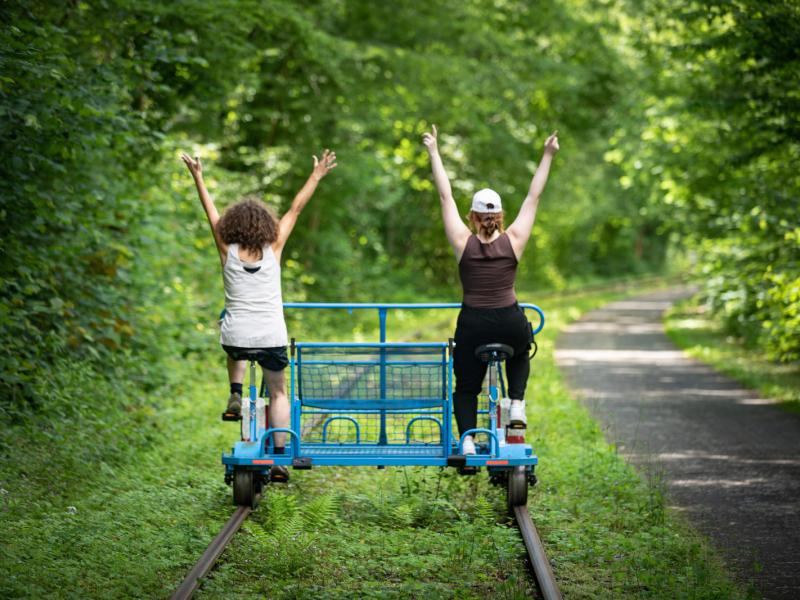 Ça vous dit, une journée à explorer la région en draisine ? Cette petite voiturette que vous actionnez en pédalant, ne circule que sur d’anciennes voies ferrées. Un moyen original et amusant de passer du temps en famille ou entre amis, tout en découvrant le patrimoine de la Molignée.