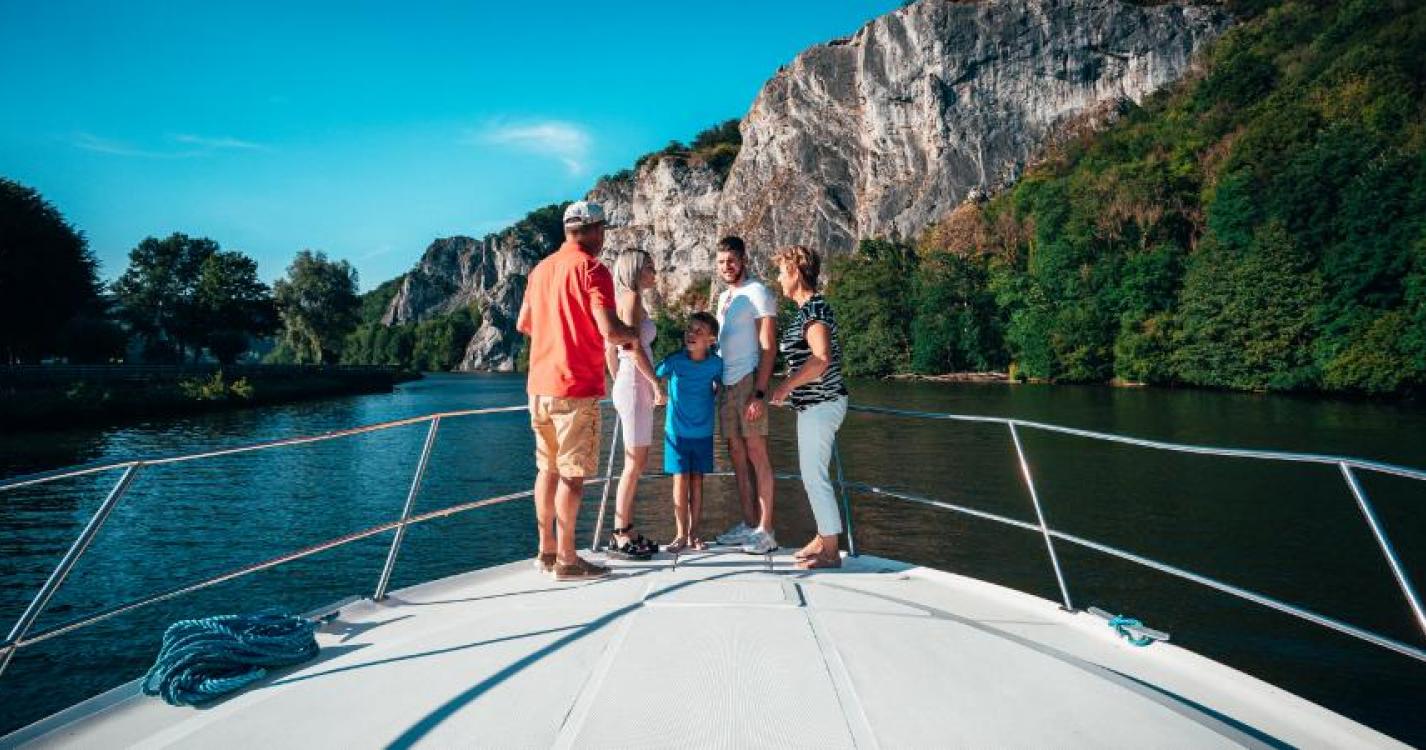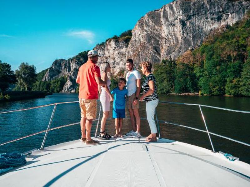 C’est à Dinant la belle, ville emblématique et haut lieu touristique, qu’est amarrée votre pénichette, qui ondule sur l’eau en vous attendant. Montez à bord, avant de vous laisser ensuite porter par vos sens et vos émotions au fil de votre voyage sur la Meuse. Ici, loin du bruit et des embouteillages, votre boat trip vous invite à découvrir la beauté de paysages calmes et apaisants, de rochers impressionnants, en étant simplement bercés par le doux clapotis de l’eau… Durant ce voyage un peu hors du temps, c’est une parenthèse enchantée qui s’offre à vous le temps d’un moment privilégié à passer en famille ou entre amis.
