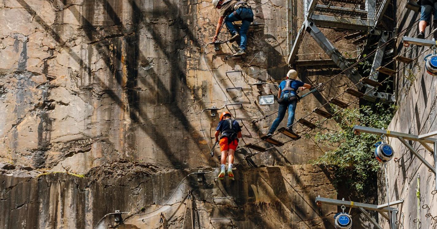 Le parcours Kid's Adventure aucceuille les plus jeunes pendant que les ados adultes prennent de la hauteur à 35 mètres sur le rocher de la Via Ferrata.
