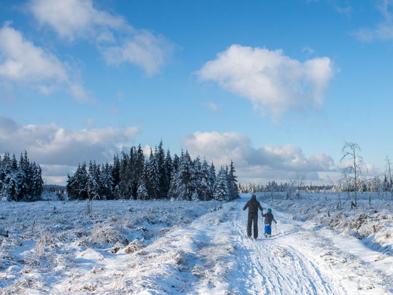 Louez des skis pour une demi-journée ou une journée complète. Parcourez les Hautes Fagnes sous son manteau blanc en choisissant une des balades en boucle au départ du chalet.