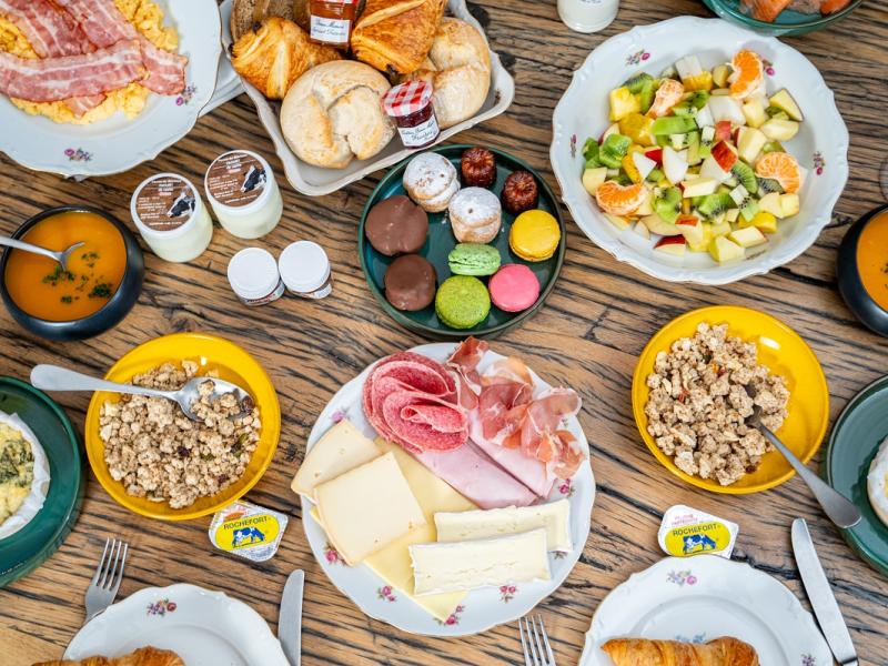 Chaque matin, entre 7h30 et 8h45, profitez de l'assortiment de délices sucrés et salés, composés principalement de produits frais locaux et de terroir. Croissants croustillants, pains au chocolat fondants, fromages affinés, charcuteries savoureuses, fruits frais... Le petit-déjeuner gourmand de Les Doux Ragots éveillera vos papilles et vous donnera l'énergie nécessaire pour une journée réussie.