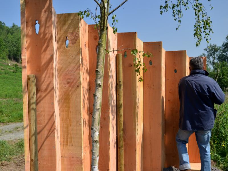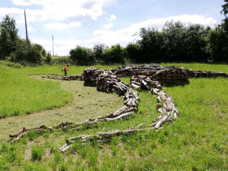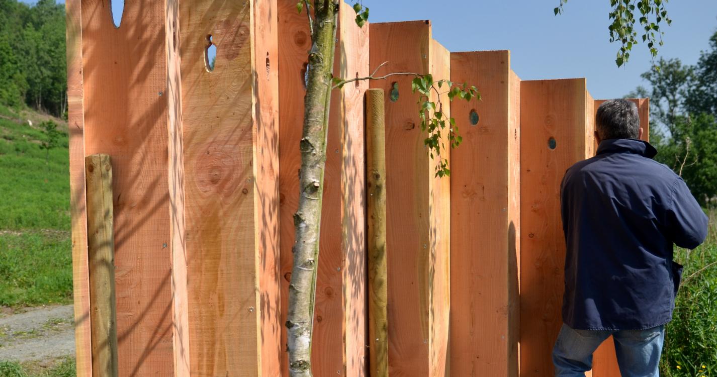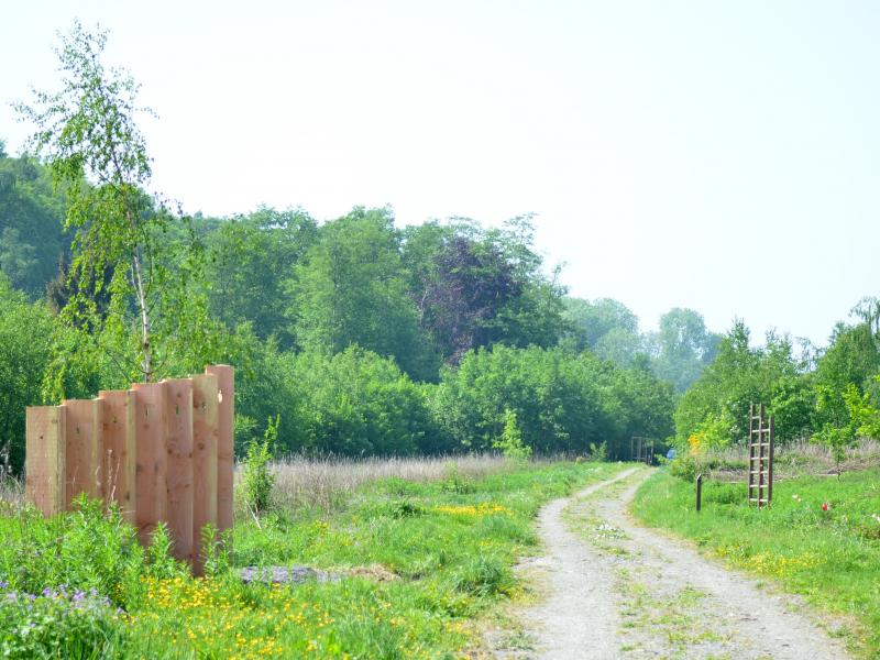 Traversez Verlée puis Buzin. Attention ici se termine le tracé original car il faut songer au retour. A la sortie de Buzin, vous longez la propriété de l'A.I.E.C. Abandonnez le balisage vers Failon (gauche) et suivez Porcheresse (droite). A 50m vers Porcheresse, oeuvre 25.