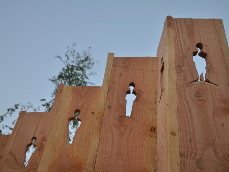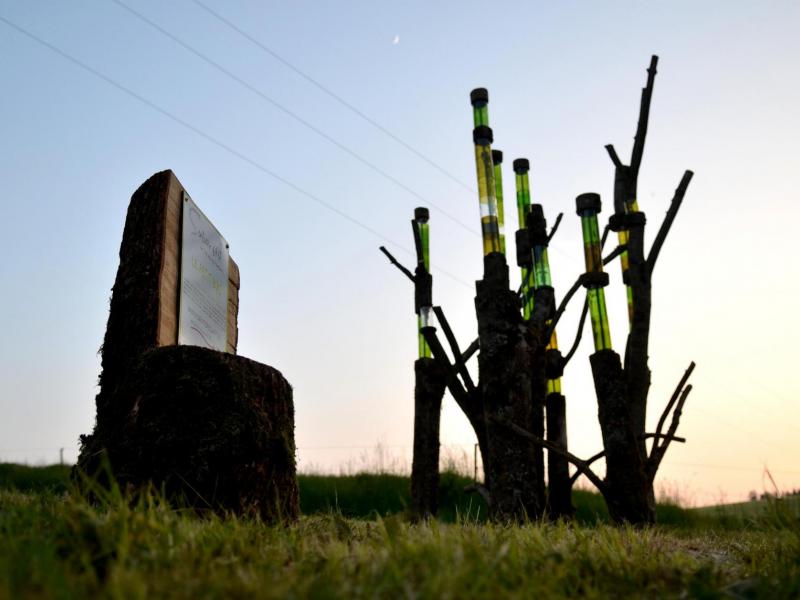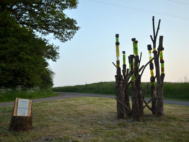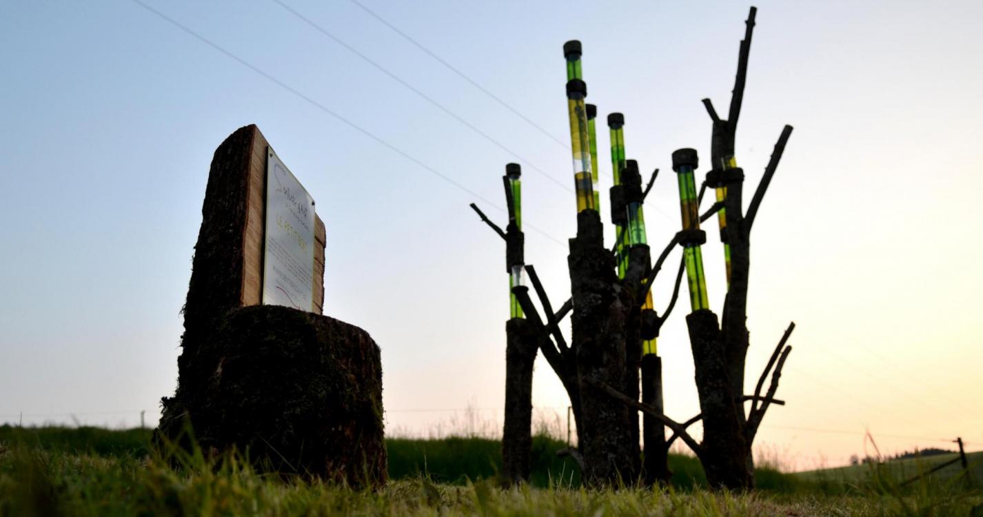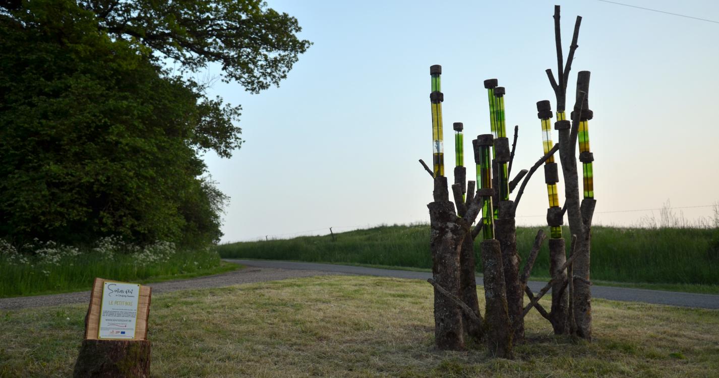 Dans la descente vers le cimetière, prendre le sentier à gauche (parcours santé balisé) et faire la boucle vers l’œuvre 22. Praticable mais c'est une forte descente.
