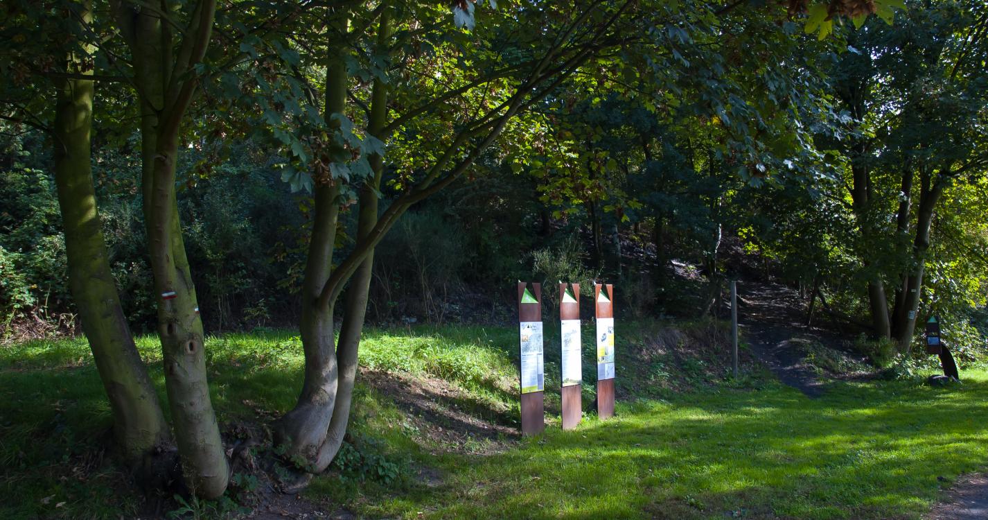 Cette balade consacrée à la houille qui fut, selon les archives à notre connaissance, exploitée de la fin du XVI à 1965. La promenade serpente ainsi dans l'ancienne zone d'exploitation et de terrils plus ou moins subsistants. Tous ces centres d'intérêt sont situés sur la rive droite de la Vesdre, à la limite du bassin géologique du pays de Herve, d'où provenaient d'ailleurs de nombreux mineurs.