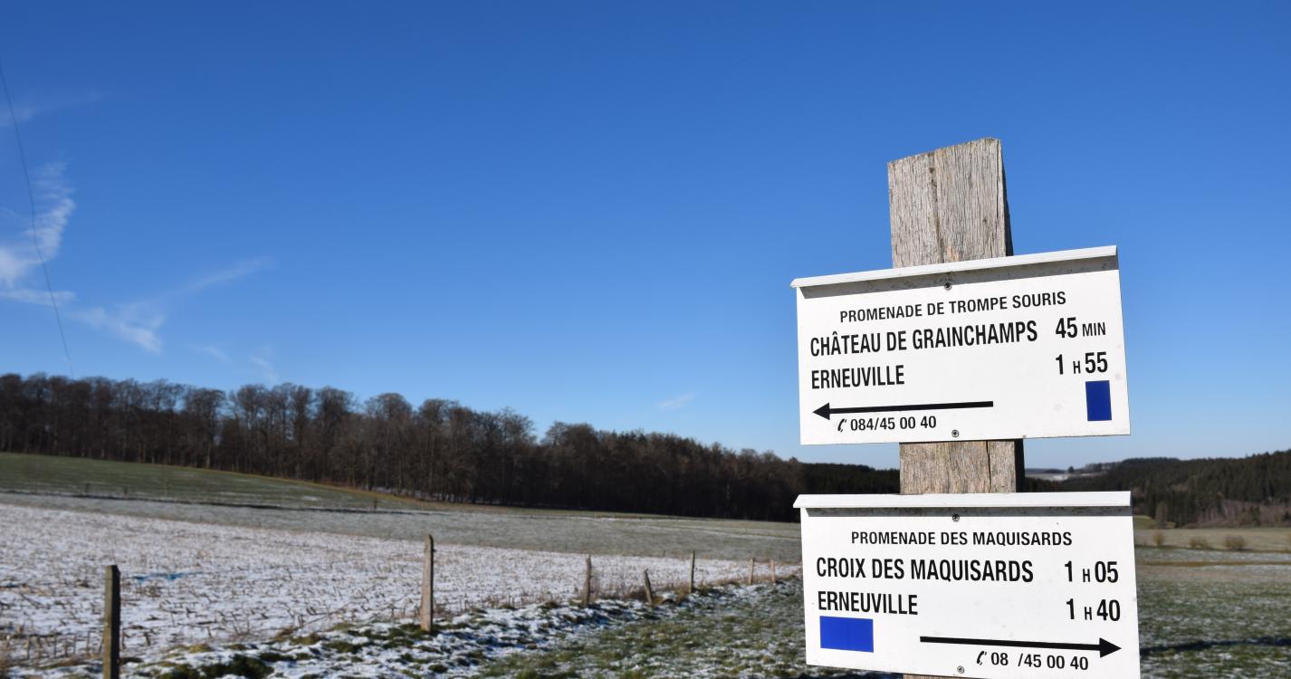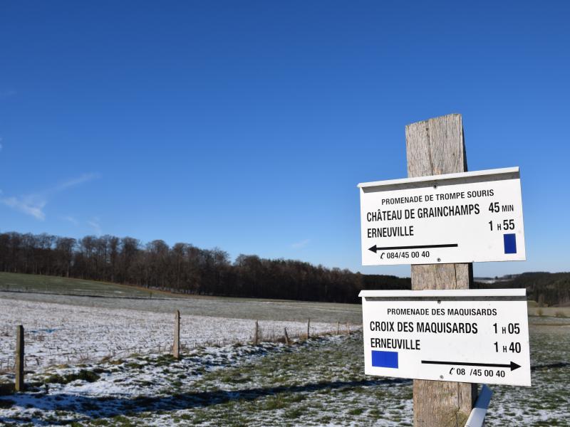 Promenade au départ de l'église du village d'Erneuville. La première partie de l'itinéraire passe par des chemins de campagne pour rejoindre la forêt d'épicéas... A l'exception de 3 montées, l'itinéraire ne présente pas de difficulté majeure.