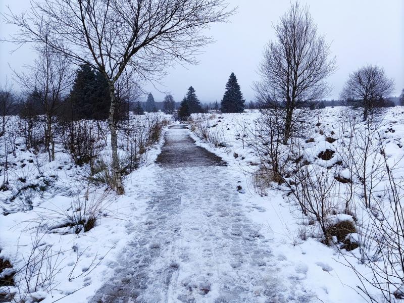 Découvrez la fagne de la Poleur et son sentier didactique grâce aux nombreux caillebotis présents sur le parcours.