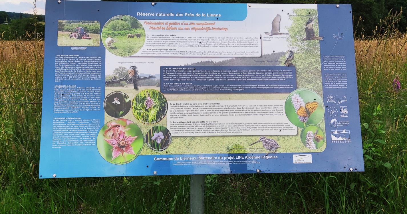 Cette promenade débute dans le charmant village de Hierlot et vous emmène vers la réserve naturelle « Des prés de la Lienne ».