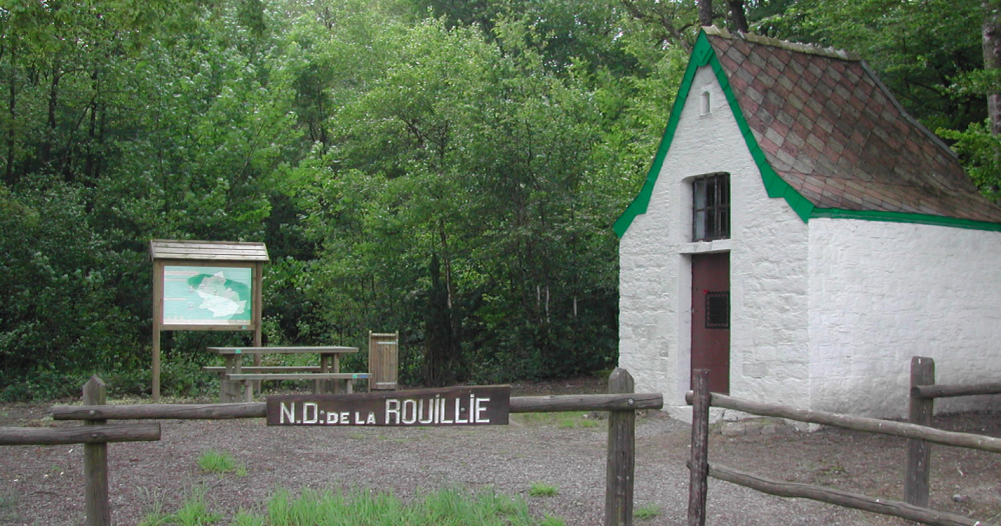 Cette petite promenade commence à la lisière du bois Magout, au pied de la Chapelle de la Rouillie. Avant 1876, il fallait emprunter les chemins de terre passant par la Chapelle et rejoindre la route entre Macquenoise et Seloignes pour se rendre à Momignies. Ce chemin était donc la seule voie de communication de l'époque. Un indicateur routier (malheureusement non daté) a été retrouvé en 1947 près de la chapelle. Celui-ci semble y indiquer la présence d'une colonie romaine. C'est là que ISAROMAGUS est représenté au sommet de la carte des Gaules sur la rivière ISARA (Oise) comme terminus de la route commerciale venant de MASSILIA (Marseille) en passant par ARELATA (Arles), LUGDUNUM (Lyon), VIROBINUM (Vervins).