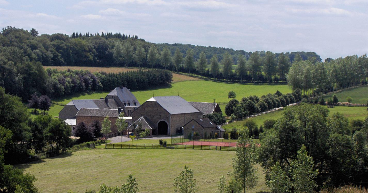De la Grand-Place, la balade se dirige vers certains bâtiments emblématiques de la Commune : l’ancienne Cour de Justice qui connut plusieurs reconstructions et mutations fut d’abord érigée en forteresse en 1124, la Collégiale St-Médard déjà évoquée en 959 et le «Château-Ferme» de Potter du 17e s. Le chemin glisse vers le Petit Ouffet, le Tige de Fairon puis Odeigne où se niche une magnifique ferme du 17e s. au cœur d’un paysage unique. Après avoir longé la lisière du bois de « Houp-le-Loup » et découvert une ferme admirablement rénovée en habitations le sentier s’enfonce vers le Nord dans une belle forêt pour aboutir sur un plateau et rejoindre l’ancienne ligne du tram le long de la Carrière du Troïdo. Au Brihî Tiyou, le majestueux «Gros chêne», témoin du riche passé historique et folklorique du village, fut selon la légende le lieu de procès de sorcellerie au 17e s.