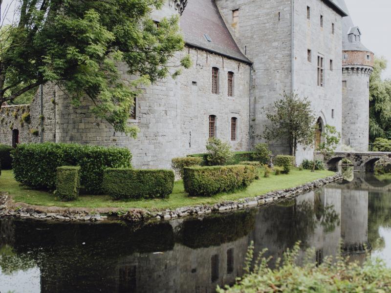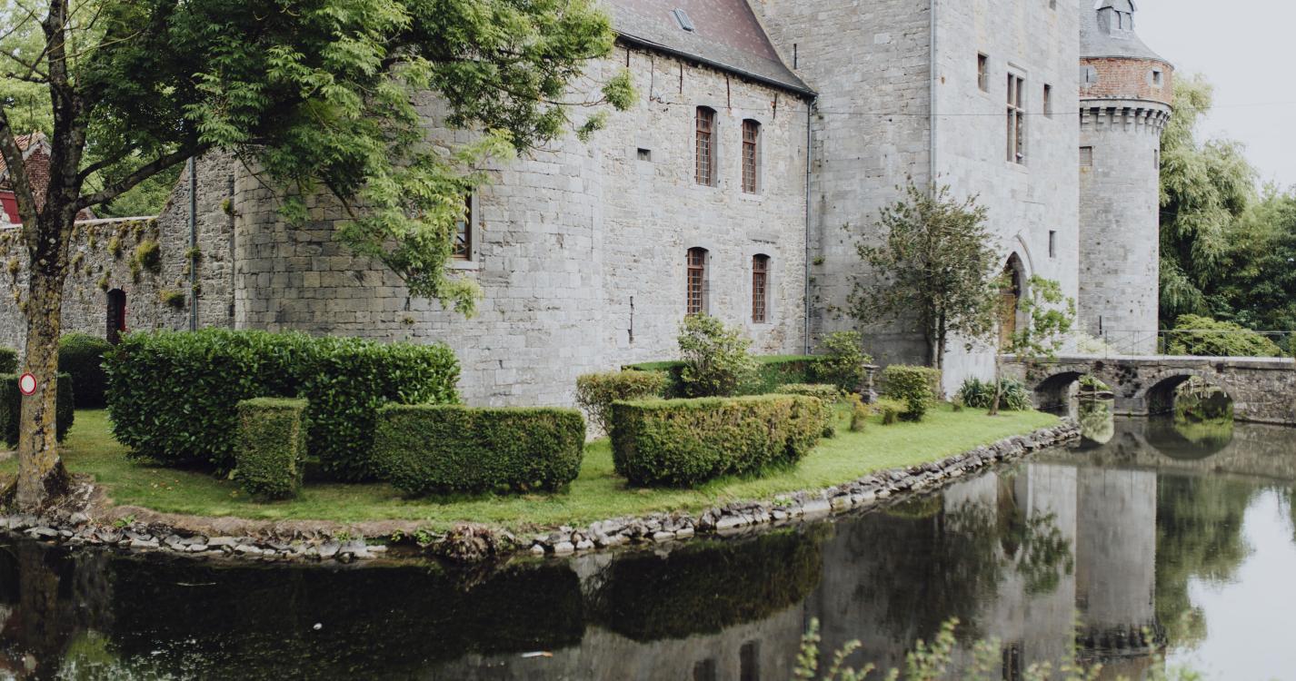 La promenade débute au pied du château fort de Solre-sur-Sambre. Situé au confluent de la Thure et de la Sambre, le château dont la construction date du début du 14ème siècle défendait la frontière. Témoin de l'architecture militaire médiévale du Hainaut, le Château a conservé son plan en quadrilatère avec tours circulaires renforçant les quatre angles. Ses douves sont alimentées par les eaux de la Thure. Au détour du sentier qui contourne le château et enjambe la Thure, l’église Saint-Médard se dresse fièrement. Le second dimanche de juin, lors de la marche folklorique de l’Entre-Sambre-et Meuse, Saint-Médard accompagne la procession. En arrivant sur la chaussée principale, attardez-vous devant la ferme du clocher érigé 1792, sa tour est classée. Après la traversée des champs qui longent les bois, découvrez la ferme d’abbaye de la Thure, seule vestige d’une abbaye de chanoinesses augustiniennes fondée au 13ème siècle.