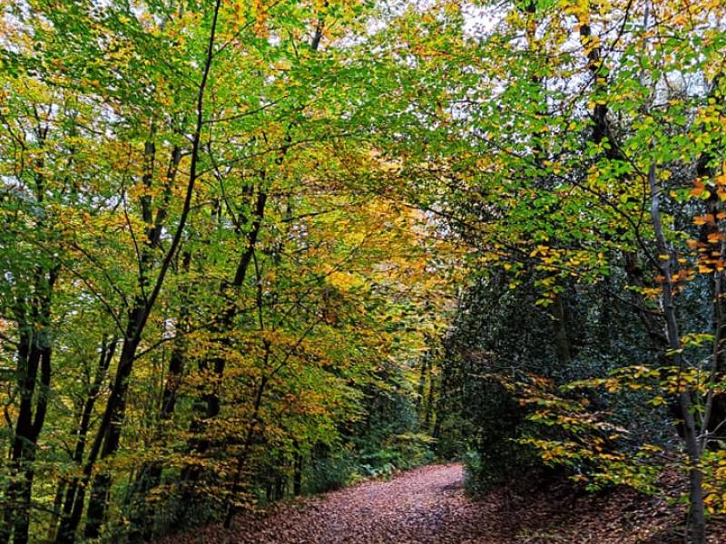 Cette promenade est très reposante, elle longe le lac et continue dans une grande forêt. Les couleurs automnales rendent cette forêt magnifique et très colorée.