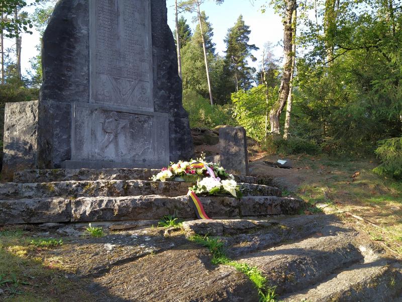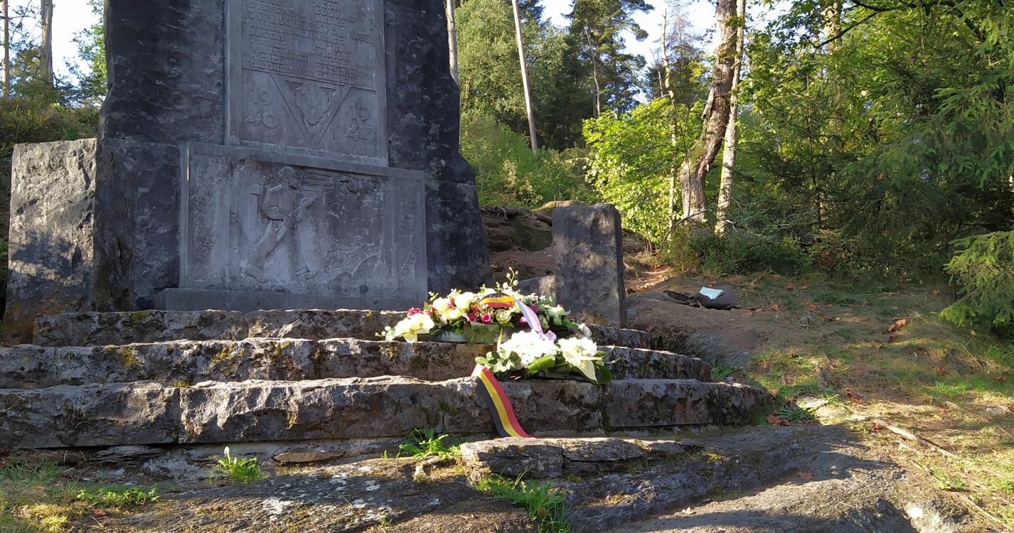 Belle promenade à l'écart des villages, tout forêt. Passage devant deux lieux de mémoire perdus en forêt.