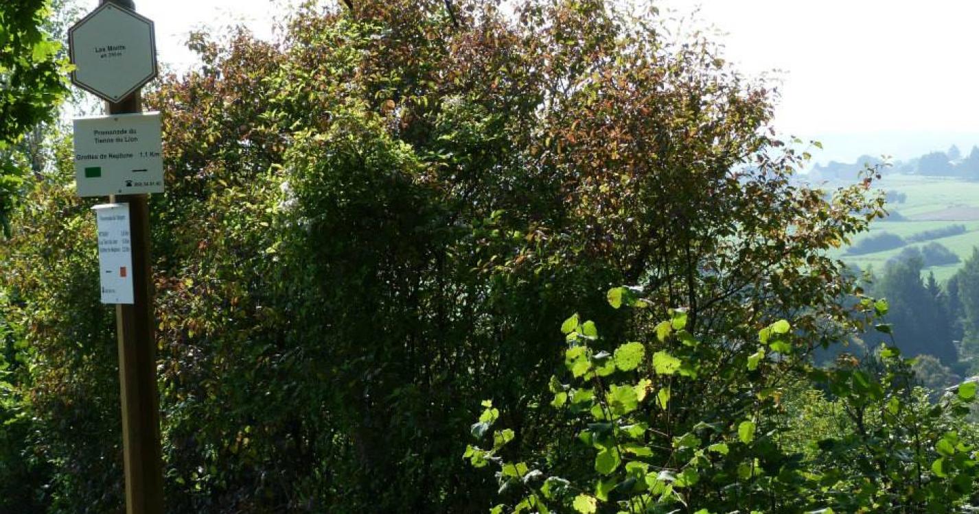 Accédez au Tienne du Lion d'où vous bénéficierez d'un superbe panorama sur le village de Frasnes.