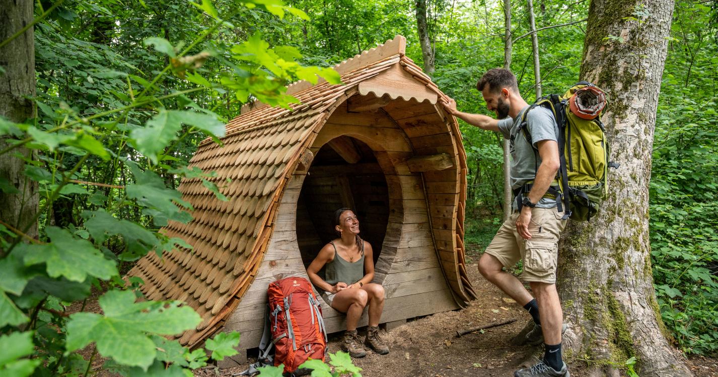 A la découverte de 4 oeuvres Sentiers d'Art: Woven Sheltern Seat, Tortvak, Mano et Morpho.