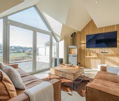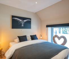 Dès qu'on entre dans cette belle et lumineuse maison de vacances, on s'y sent immédiatement à l'aise. Pas étonnant quand on sait que le propriétaire, un grand cavalier, y vivait lui-même jusqu'à il y a peu. Confort garanti ! Notre coup de cœur ? La belle terrasse en bois avec se vue apaisante sur la campagne et les villages environnants. Grâce aux belles et vastes fenêtres, vous profitez également de la vue de l'intérieur. Idéal pour se détendre au coin du poêle pendant les mois d’hiver.