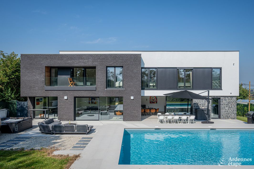 Découvrez l'expérience de luxe ultime dans cette magnifique villa à Assesse, parfaite pour un séjour inoubliable en famille ou entre amis. Cette villa moderne, située dans un village paisible, peut accueillir 14 personnes et est conçue avec un souci du détail et du confort. Avec une architecture impressionnante et une finition de haute qualité, c'est l'endroit idéal pour des vacances reposantes en Ardenne.
