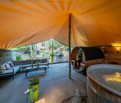Les espaces extérieurs communs sont une véritable oasis de calme et de détente. Profitez du sauna extérieur et du bain à remous en bois sur la terrasse conviviale. Ces installations sont partagées avec d'autres invités, offrant une belle occasion de rencontrer de nouvelles personnes. Pour les sportifs, il y a un baby-foot et une salle de jeux commune où vous pouvez vous défouler.