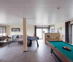 Billard, Kicker, Bar, Poêle à bois, TV