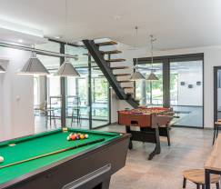 Offrez-vous une escapade dans une oasis de verdure avec votre propre piscine intérieure et jacuzzi, bar, billard et kicker !