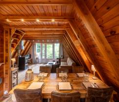 Ce chalet de vacances possède une ambiance particulièrement chaleureuse. La présence du bois, renforcée par une décoration soignée contribuent au sentiment de bien être qui y règne.