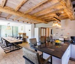 Les pierres du pays, les poutres authentiques et l’intérieur cosy confèrent à l’ensemble une ambiance chaleureuse. Vous commencez généralement la journée à 100 à l’heure ? Pas ici. Dansez dans la cuisine et savourez pleinement votre petit-déjeuner, marchez jusqu’à la forêt toute proche pour faire le plein de vitamine D ou détendez-vous dans le bain nordique chauffé au bois au fond du jardin. À prévoir absolument au programme de vos vacances : Jouez au billard dans la magnifique salle de jeux au grenier, blottissez-vous dans le confortable canapé avec un bon livre ou faites une partie de pétanque dans le jardin !
