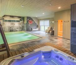 Sortez de la maison et venez découvrir le vaste bâtiment annexe (situé à quelques mètres). Vous y découvrirez la magnifique piscine intérieure qui ravira petits et grands, un jacuzzi ainsi que 2 cabines infrarouge propices aux moments de détente.