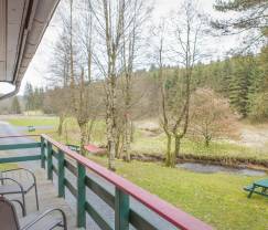Une terrasse fait tout le tour du logement mais vous pourrez aussi profiter du jardin qui se trouve en contre-bas le long du ruisseau ainsi que tu barbecue qui sera à votre disposition.