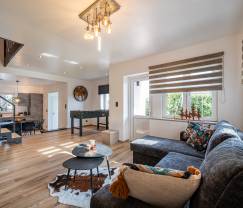 We waren de 1ste huurders van dit erg fijn verblijf. Het was een weekendje met ons kindje (1,5 j) en ander koppel. De woning is heel mooi ingericht en ook erg gezellig. Het huis wordt verwarmd met een pellet kachel, dus hiermee moesten wel wat rekening houden met ons kindje. De keuken is zeer gebruiksvriendelijk en omvatte alles. Enkel nog eierdopjes miste. De jacuzzi was ideale ontspanning. Kleine tip: misschien nog een extra zeteltje voorzien. Dicht bij een hoofdbaan, maar ook bij Durbuy.