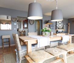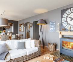 Vous serez immédiatement séduit par le soin apporté à la décoration intérieure qui fait de chaque pièce un lieu unique et convivial. C’est au rez-de-chaussée que vous prendrez l’habitude de vous réunir, avec notamment un salon cosy, idéal pour un apéritif au coin du feu ou une soirée TV, confortablement installé sur ses beaux canapés. Un peu plus loin la salle à manger, vaste et lumineuse, pourra sans mal accueillir toute la famille pour des repas dans la joie et la bonne humeur. Les larges baies vitrées donnent directement sur un grand balcon qui offre une vue absolument splendide sur Durbuy. Vous y trouverez du mobilier de jardin incluant des transats, mais aussi un barbecue pour vos soirées d’été. Au rayon des réjouissances, notez également la présence d’un espace détente avec sauna, idéal pour un instant bien-être en fin de journée. À l’étage, vous vous partagerez 3 chambres, tout aussi ravissantes que le reste de la maison, et disposerez d’une salle de bains avec douche et baignoire.