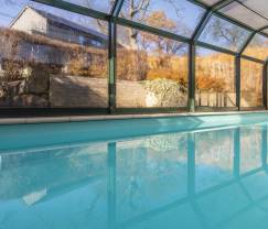 Piscine extérieure chauffée et couverte par un dôme, disponible du 01/06 au 30/09.