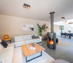 La villa dispose de 4 chambres et 3 salles de bains, idéale pour les familles, amis ou couples qui souhaitent profiter ensemble de vacances détendues. Pour les tout-petits, un lit bébé, table à langer et une chaise haute sont disponibles, afin qu'eux aussi se sentent complètement chez eux. Le grand salon est équipé d'une cheminée, qui crée une ambiance chaleureuse et conviviale lors des soirées plus fraîches.