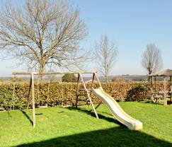 A l'extérieur, vous retrouverez des jeux d'enfants : balançoire, terrain de pétanque, jeux en bois... Au fond du jardin, passe le Ravel qui relie Marche-en-Famenne à Hotton : le point de départ idéal pour une balade à vélo, en roller ou en poussette !