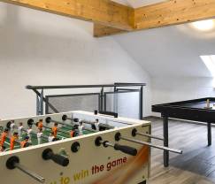 Grande maison pouvant accueillir un grand groupe. Belle terrasse à l'arrière avec une belle vue. Les chambres ont leur propre lavabo et il y a suffisamment de salles de bains et de toilettes. 2 points d'attention : L'accès à la (chouette) salle de jeux se fait par l'extérieur. Et la rue est assez passante même si on est en périphérie du village.