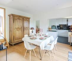 La maison dispose de 3 chambres et 2 salles de bains, idéales pour une grande famille ou un groupe d'amis. Pour les plus petits, un lit bébé et une chaise haute sont disponibles. Le jardin privé et la terrasse privée sont parfaits pour profiter du soleil et organiser un délicieux barbecue . Le barbecue est au bois, ce qui donne ce goût fumé authentique.