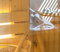 Mais, le meilleur est évidemment l'espace wellness qui se situe dans un bâtiment annexe de la maison avec un jacuzzi 5 personnes et un sauna traditionnel pour 3 personnes.