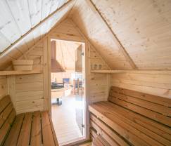 De plus, il y a à l'extérieur du gîte, un sauna pour le plus grand plaisir des adultes et un kota grill de quoi passer de soirées plus que sympathiques dans un chalet équipé d'un grill central.