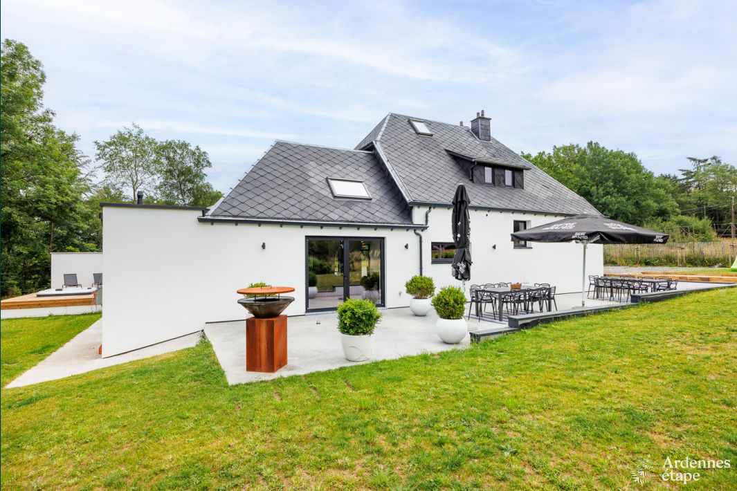 Een zeer mooi en groot modern vakantiehuis. Een aanrader voor groepen van 10-14. Zeer mooi en onderhouden huis, toffe leefruimtes, mooie en ruime slaapkamers. De jacuzzi en de pooltafel zijn een meerwaarde, en ook de mooie grote tuin.
