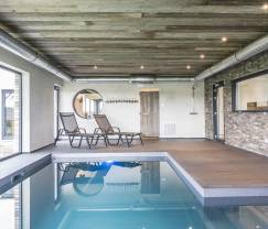 Idéale pour un séjour en famille ou entre amis, cette maison à l'ambiance unique ravira petits et grands grâce à sa piscine intérieure, ses pièces de vie conviviales et la grande qualité de ses finitions.