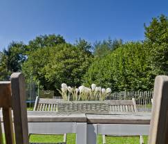 Le jardin est clôturé. Vous ne devez donc pas vous souciez des enfants qui jouent dehors sur les jeux d'enfants. Ils pourront profiter d'une plaine de jeux avec deux tours, un toboggan et deux balançoires mais aussi du trampoline ! Dans le garage petits et grands pourront jouer au ping-pong.