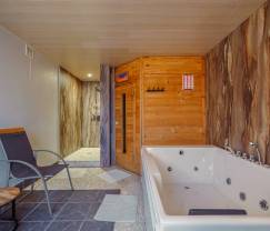 Pour vous détendre, l'espace détente comprend un sauna et un bain à bulles. Des transats sont à votre disposition pour profiter de la belle terrasse. Et enfin le barbecue pour finir la journée en beauté !