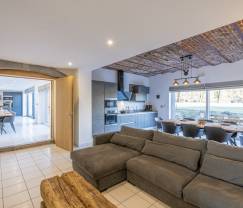 Ancienne ferme pleine de caractère et d’équipements pour vous plaire : 8 chambres, salon avec feu et kicker, jeux dans le jardin, jacuzzi sur la terrasse… Une ambiance douce et lumineuse rythmera votre séjour dans cette maison de vacances de grande capacité. Joliment rénovée, elle affiche des éléments authentiques comme les briques et le bois, qui donnent beaucoup de cachet à l’endroit. Les...