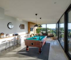 La magnifique grande pièce de vie est juste parfaite pour un séjour en famille. Chacun trouve son espace pour lire, pour jouer aux jeux de société … alors que d’autres cuisinent et tout cela en restant tous ensemble. Le billard est un réel plus. Les extérieurs sont parfaits aussi. Tout est bien pensé et aménagé pour réussir son séjour en famille.