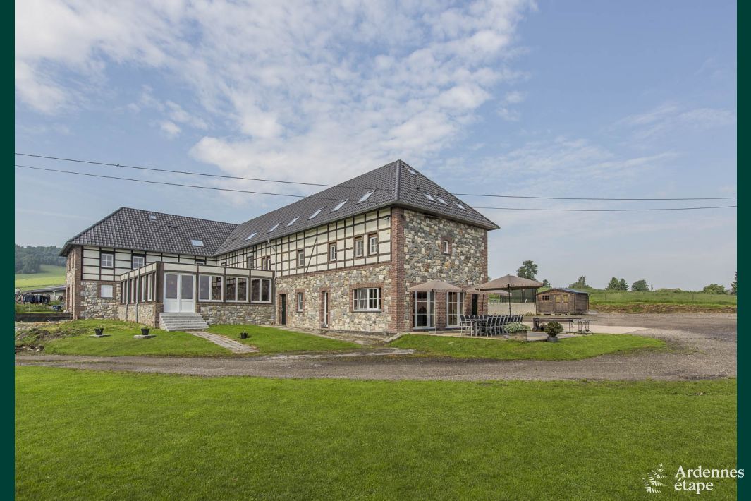 Voici le cadre parfait pour une magnifique réunion de famille au cœur des Ardennes . Vous trouverez cette vaste maison de vacances du côté de Plombières et bénéficierez d’un équipement haut de gamme. Entre 38 et 42 personnes pourront se rassembler sur cette propriété séparée en deux parties...