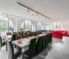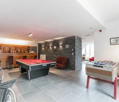Avec 8 chambres, chacune équipée de sa salle de bains privative, cet hébergement est tout indiqué pour un séjour jusqu’à 26 personnes. Certaines chambres avec lits superposés feront le bonheur des enfants et chacun trouvera le confort nécessaire, grâce à des pièces spacieuses et bien aménagées. Vous disposerez notamment d’une très grande pièce à vivre, où tout le monde pourra se réunir à l’occasion d’un repas ou d’un apéritif convivial, suivi d’une partie de billard. La salle de jeux propose également un baby-foot et un bar. D’un point de vue fonctionnel, cet ancien hotel reconverti en maisons de vacances a conservé sa cuisine professionnelle équipée ce qui est très pratique pour la cuisine de groupe.