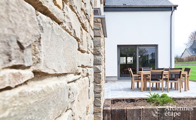 Cette bâtisse de caractère, récemment construite, vous accueille au nombre de 8 à proximité de Redu pour profiter de la vie à la campagne, sans rien négliger du confort moderne !