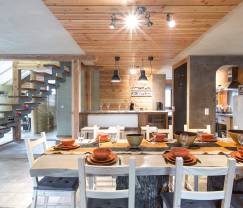 Dans une ambiance chaleureuse et cosy, vous y découvrirez au rez-de-chaussée une grand pièce de vie ouverte avec salon, salle à manger (avec une table unique réalisée par le propriétaire), un coin bar et la cuisine équipée... le tout réchauffé par un feu ouvert hyper chaleureux. C'est ici aussi que les enfants profiteront d'un espace de jeu. L'étage est dédié au repos, avec 4 belles chambres (dont une façon dortoir idéale pour les kids) et 2 agréables salles de bains.