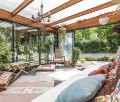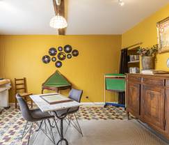 C'est ici! Une maison villageoise 3 étoiles en pierres, typique de la région, dont la décoration romantique vous fera voyager au-delà de la Manche. Des tissus fleuris, de belles poutres apparentes, des fauteuils en cuir ou en tissus lignés, des papiers peints aux motifs baroques et bucoliques, voilà ce qui apporte une touche britannique à l'ensemble. Le résultat? Une maison de vacances chaleureuse et pleine de caractère où on aime profiter d'un feu de bois en savourant un apéro entre amis ou en famille, ou d'un barbecue posé sur la terrasse dominant la vallée silencieuse. Les enfants apprécieront sa salle de jeux, ses jeux extérieurs et son jardin qui font de ce lieu une source inépuisable d'amusement.