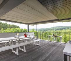 À l'extérieur, cette location dispose de plusieurs terrasses, qui s'offrent à vous dès la sortie du lit pour commencer la journée du bon pied. Elles vous donnent un panorama superbe sur la propriété boisée.
