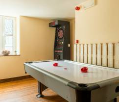 Composée d'un bâtiment principal et d'un bâtiment indépendant, cette location de vacances permettra à une partie du groupe de s'isoler tout en gardant une totale indépendance. Cette magnifique maison de vacances 4 étoiles pour 22 personnes vous propose de passer un séjour de très grande qualité dans une des plus belles régions de la province de Liège. L'intérieur, décoré avec soin, passion et goût, vous permettra de vous reposer en toute sérénité et de profiter d'une atmosphère moderne plaisante. Avec ses 9 chambres cosy et ses 8 salles de bains de luxe (6 sont privatives), vous disposerez de tout l'espace et de toute l'intimité dont vous pourriez rêver. Les nombreux espaces de vie de cette location de vacances 4 étoiles sont agencés avec perfection pour vous offrir un niveau de confort inégalé. Des salons douillets super équipés (kicker, jeu de fléchettes, jeu de palets...), une salle de jeux pour les enfants, une salle à manger conviviale et lumineuse ainsi que deux espaces de détente avec jacuzzi. Vous trouverez aussi une cuisine équipée, une buanderie avec tout le nécessaire pour la lessive et, bien entendu, la superbe piscine intérieure chauffée (transats et un autre jacuzzi en prime juste à côté) ! Notons également qu'une connexion internet WIFI ainsi que la télédistribution sont disponibles.
