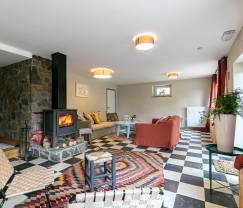 Derrière cette sympathique façade à colombages, la déco de ce gîte mêle joliment les influences bohème, vintage et contemporaine, créant une atmosphère unique. Les couleurs, le mobilier et le poêle confèrent une agréable chaleur à l'espace de vie. Les chambres sont chics et disposent chacune d'une salle d'eau, ce qui préserve l'intimité de chacun.